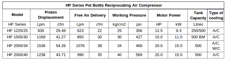 The salient features of our range of Pet Bottle Air Compressors include: